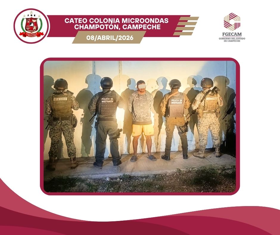 La Fiscalía General del Estado de Campeche (FGECAM) informa que el 7 de abril de 2026 ejecutó dos órdenes de cateo en inmuebles ubicados en la colonia Microondas, en el municipio de Champotón, como parte de investigaciones por delitos contra la salud en su modalidad de narcomenudeo, en su variante de posesión con fines de comercio.