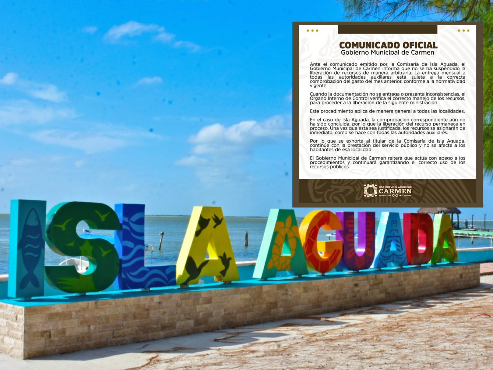 El Gobierno Municipal de Carmen informó que no existe suspensión arbitraria en la liberación de recursos destinados a Isla Aguada, luego del comunicado emitido por la comisaría de esa localidad.