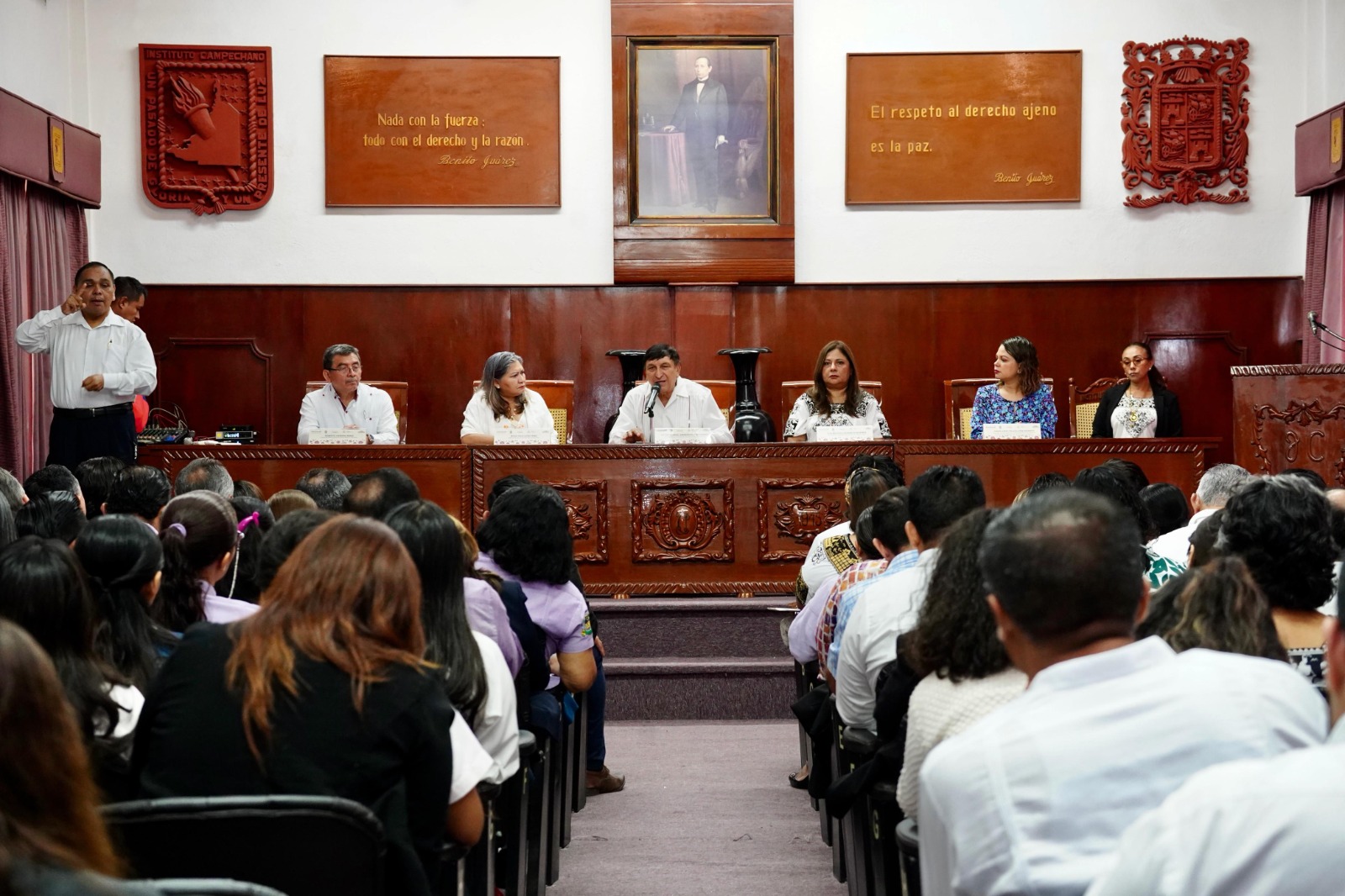 En esta inauguración se contó con la presencia de Yanin Ruvalcaba Moroy, jefa del departamento de Prevención y Contra las Violencias de Género en las Escuelas Normales de la Dirección General de Educación Superior para el Magisterio (DGESuM); del subsecretario de Educación Básica, Roberto Herrera Maas; la directora de la oficina del secretario, Rosa Isela León Pérez; y de la rectora del Instituto Campechano, Ilsa Cervera Echeverría.